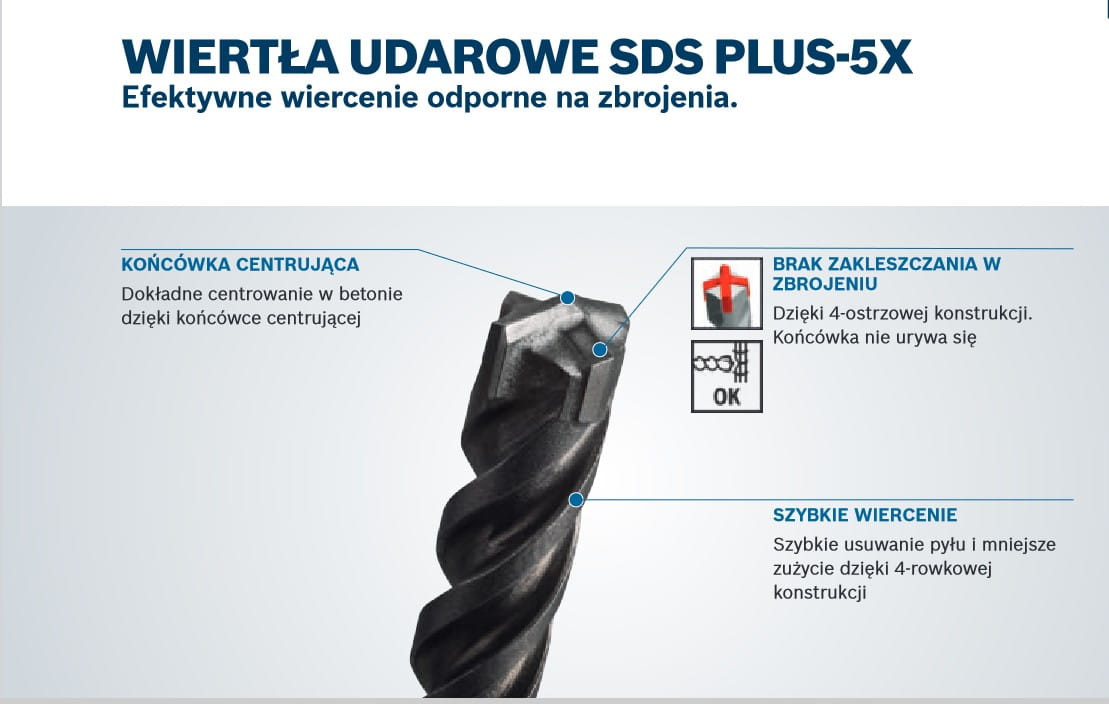 BOSCH WIERTŁO SDS PLUS-5X 4-ostrzowe 24 x 400/450