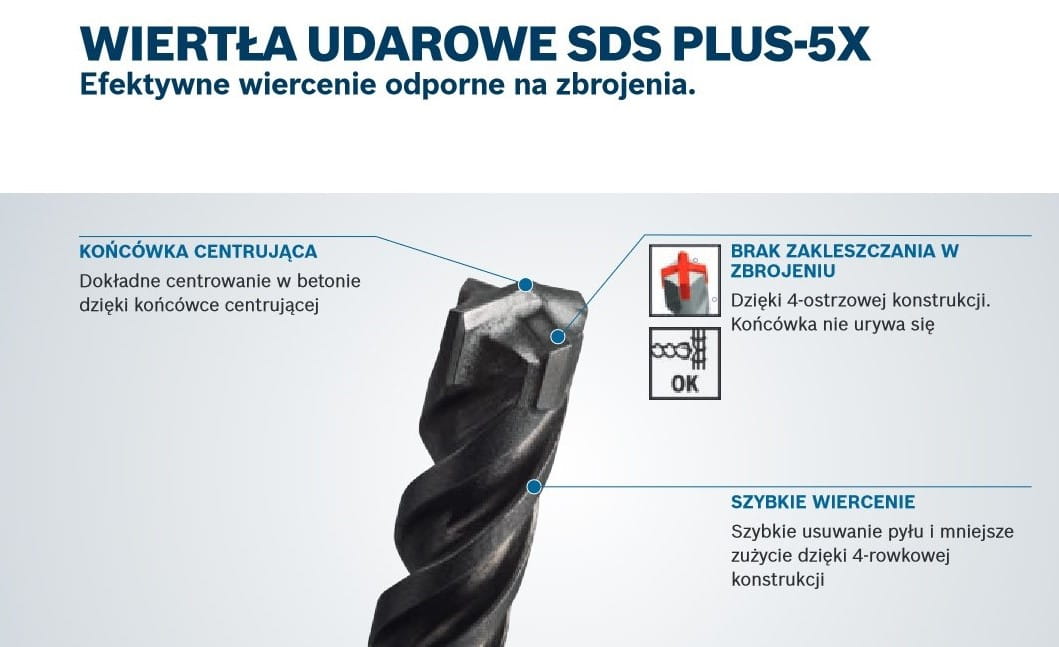 To wiertło jest zalecane do wiercenia w murze, betonie i żelbetonie.