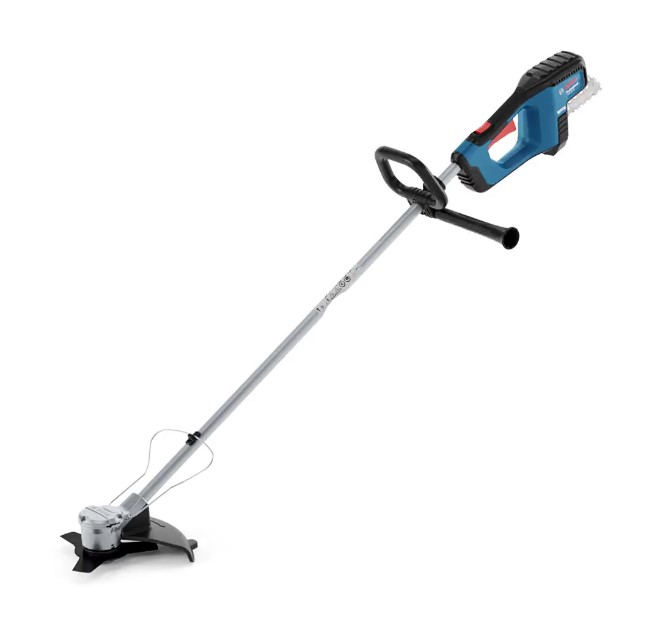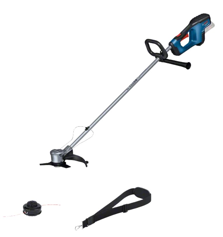 GFR 18V-23 Professional to wydajna wykaszarka akumulatorowa do średnich i dużych ogrodów, która z łatwością radzi sobie z grubszymi roślinami i gęstym poszyciem. Narzędzie jest kompatybilne ze wszystkimi akumulatorami i ładowarkami systemu profesjonalnego 18 V firmy Bosch. Jest także kompatybilne z systemem akumulatorowym AMPShare. Narzędzie jest wyposażone w trwałą, aluminiową obudowę silnika, metalowe ostrze wycinane techniką laserową (średnica cięcia 23 cm) oraz kabłąk dystansowy, który chroni pnie drzew przed uszkodzeniem. Model jest wyposażony w szpulę Pro-Tap z funkcją EasyWind, która ułatwia przycinanie. Ostrze i szpulę można w łatwy sposób wymienić. W zakres dostawy wchodzi także pas na ramię.