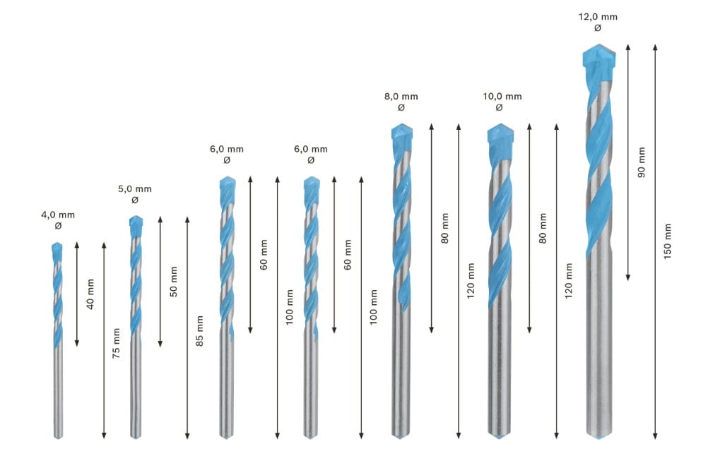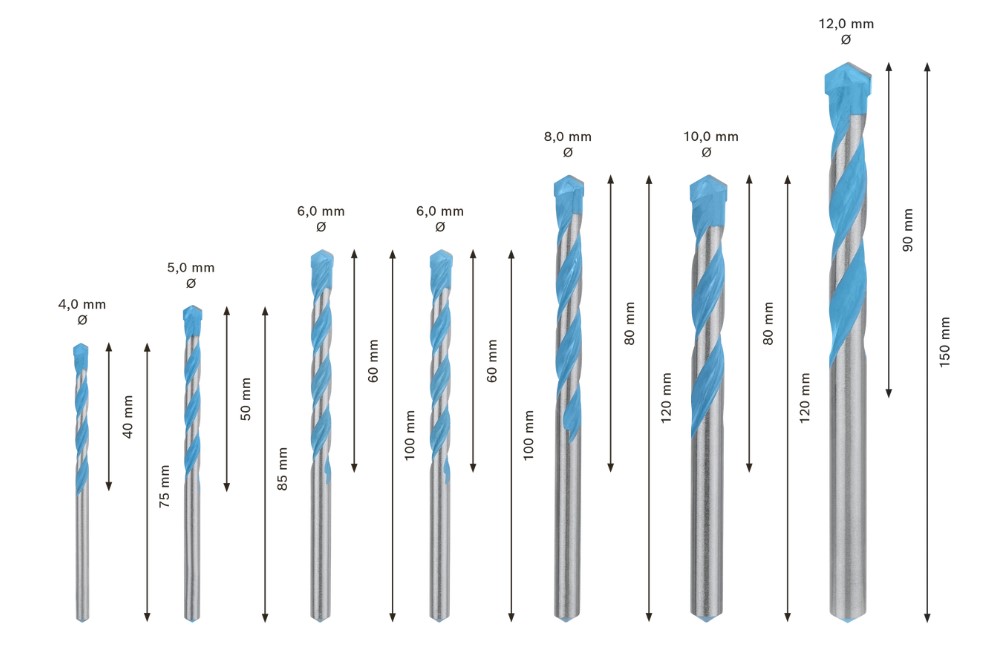 Wiertło jest przeznaczone do praktycznie każdego materiału w trakcie prac wewnątrz budynków, na przykład do miękkiego betonu, muru, cegły, cementu, azbestu, lekkich materiałów budowlanych, materiałów wielowarstwowych, ceramiki i płytek ceramicznych, drewna, tworzyw sztucznych, cienkich arkuszy metali i aluminium.