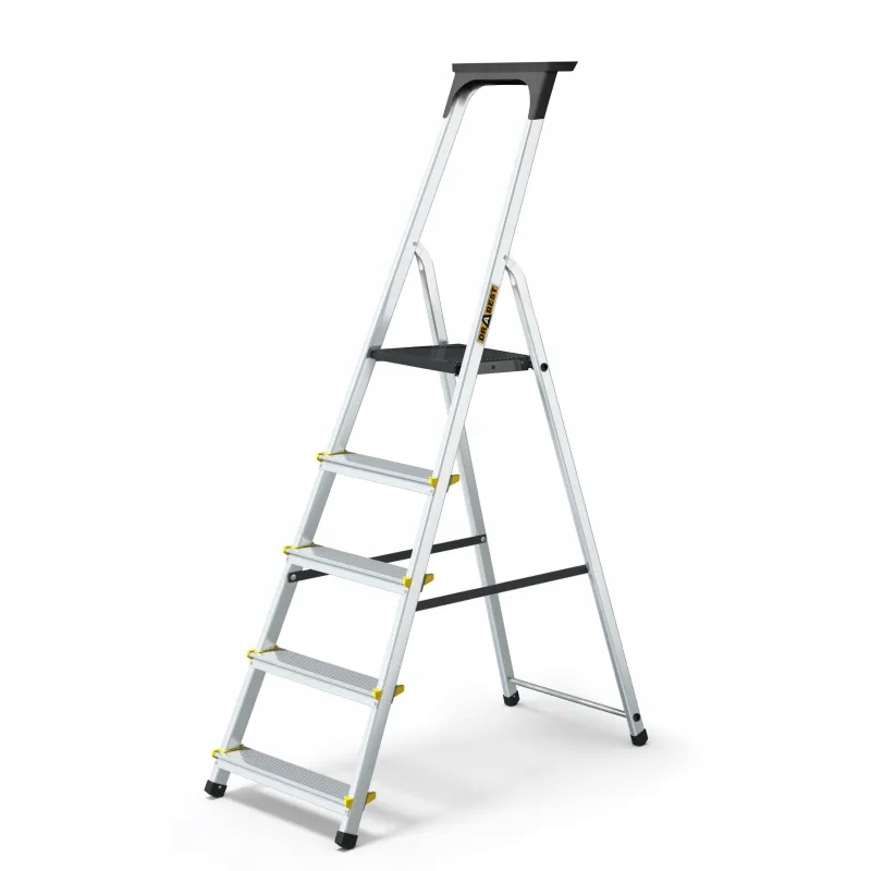 Stopnie utrzymują użytkownika stabilnie na różnych wysokościach, minimalizując ryzyko poślizgnięcia się podczas korzystania z drabiny.