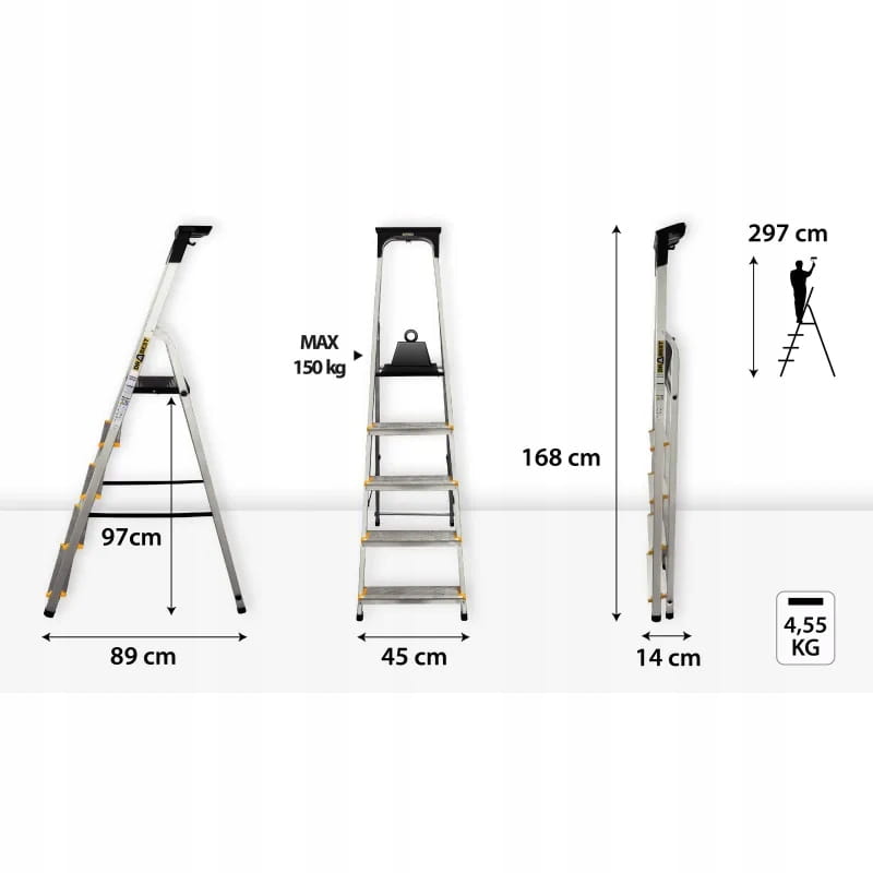 Umożliwia to łatwe sięganie do wysokości 2,97 metra, co czyni tę drabinę niezbędnym narzędziem w domu.