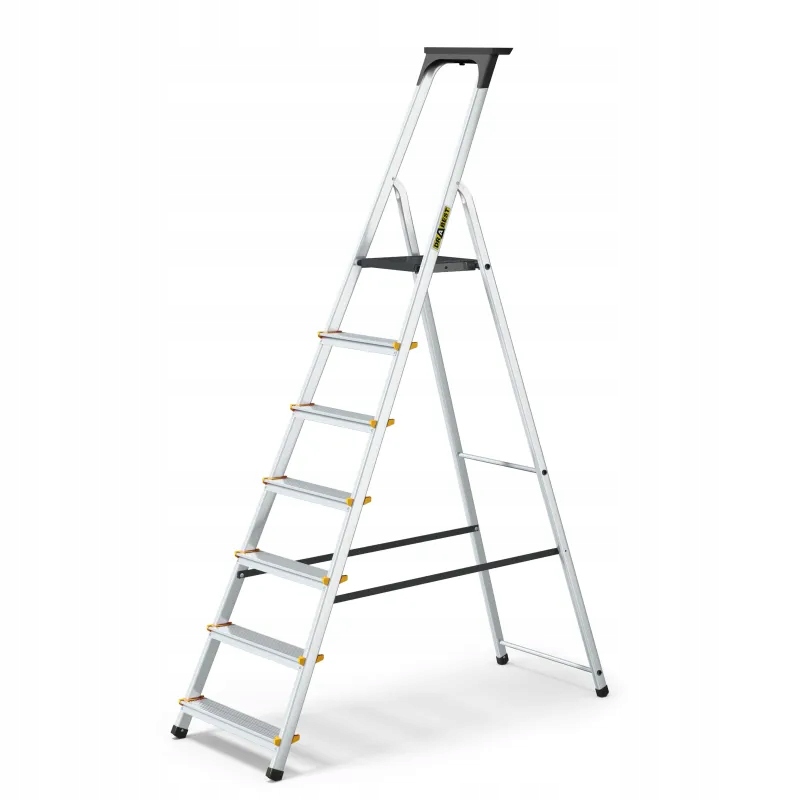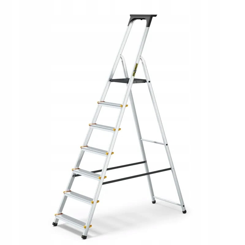 DRABEST Aluminiowa drabina PRO z półką na narzędzia 7 stopni 150 kg