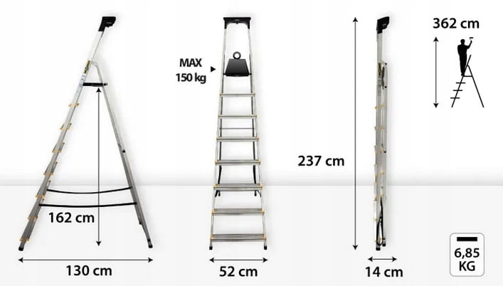 Umożliwia to łatwe sięganie do wysokości 3,62 metra, co czyni tę drabinę niezbędnym narzędziem w domu.