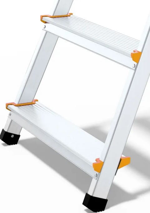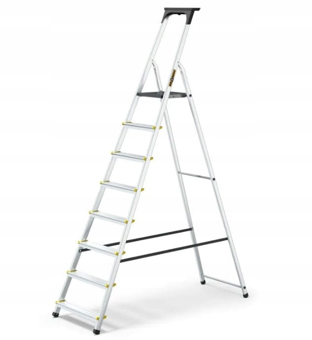 Stopnie utrzymują użytkownika stabilnie na różnych wysokościach, minimalizując ryzyko poślizgnięcia się podczas korzystania z drabiny.