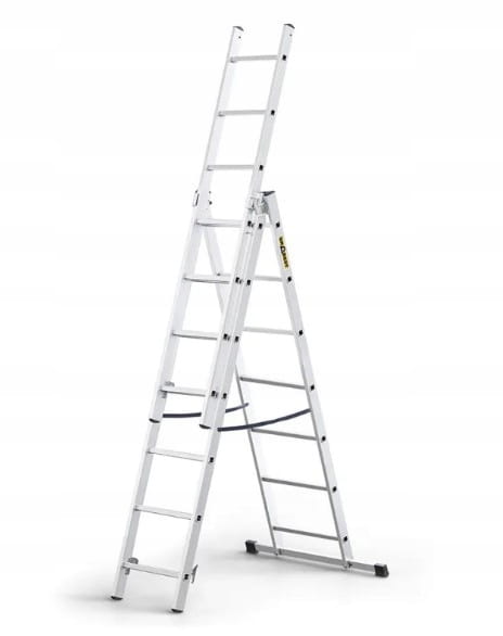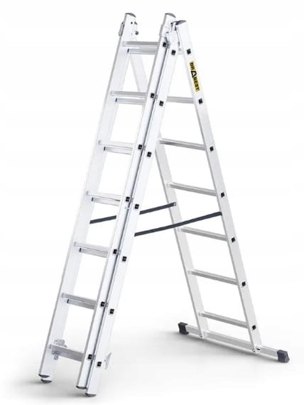 Drabina marki DRABEST to wielofunkcyjna drabina 3w1 - kupując jedną drabinę otrzymujesz możliwość uzyskania trzech drabin: drabiny przystawnej, rozstawnej oraz wolnostojącej z wysuniętym trzecim elementem.