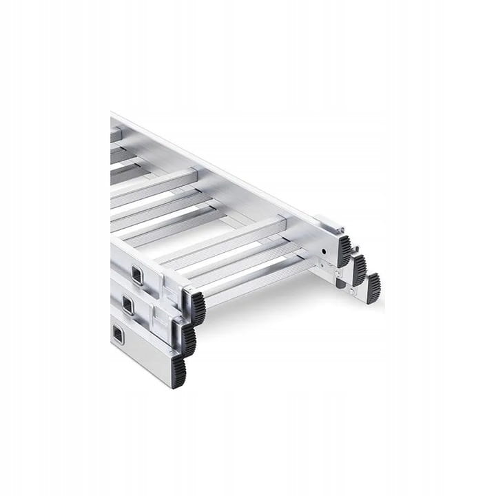 Solidne zaczepy i blokady automatyczne, by zachować pełną stabilność drabiny w wybranej konfiguracji.