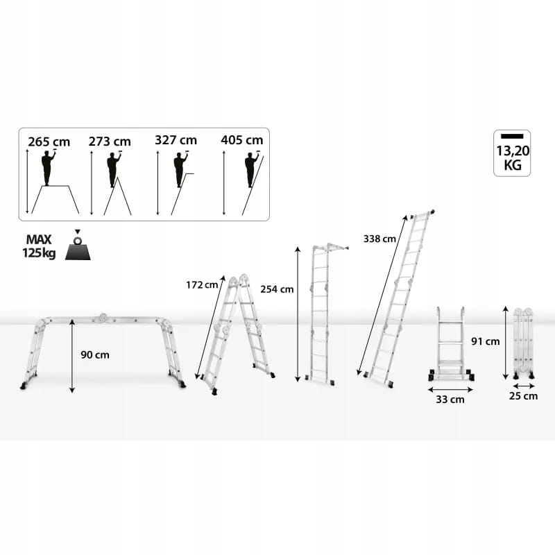DRABEST Drabina przegubowa uniwersalna wielofunkcyjna 4x3 + podest 125kg
