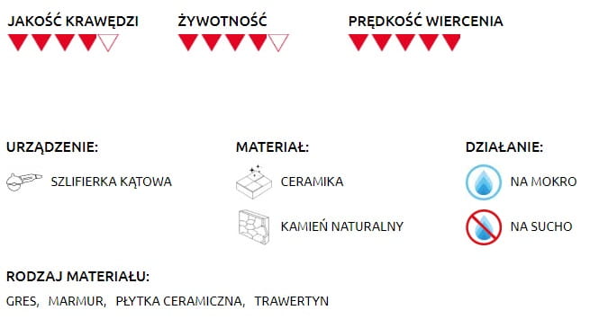 - Rodzaj materiału: gres, marmur, płytka ceramiczna, trawertyn