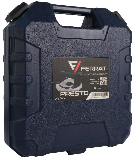 W komplecie znajdują się: przyssawka próżniowa automatyczna PRESTO, akumulator, ładowarka, dwa filtry przeciwpyłowe, walizka transportowa, instrukcja obsługi.