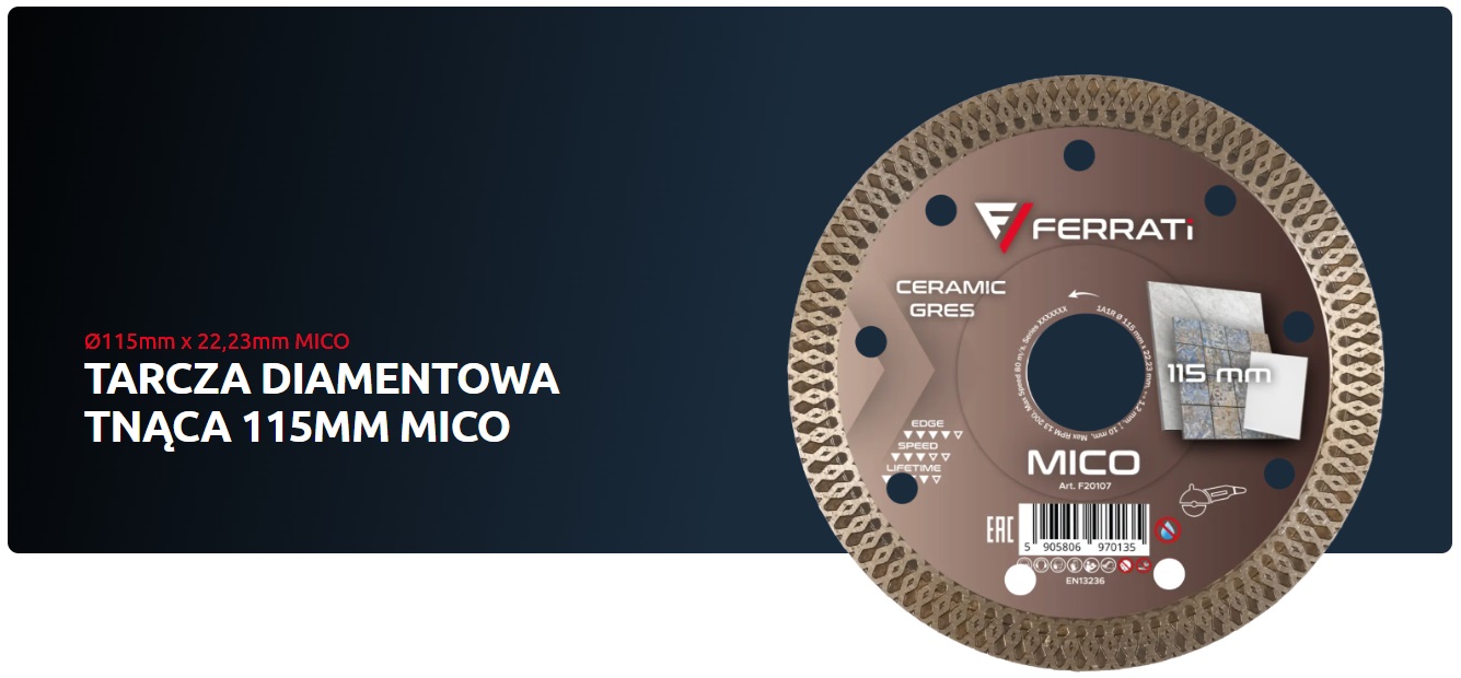 FERRATi TARCZA DIAMENTOWA TNĄCA 115 MM MICO 22,23 CERAMICA GRES F20107
