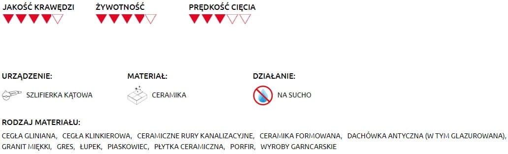 - Rekomendowana do płytek ceramicznych i gresowych o maksymalnej grubości 20mm.