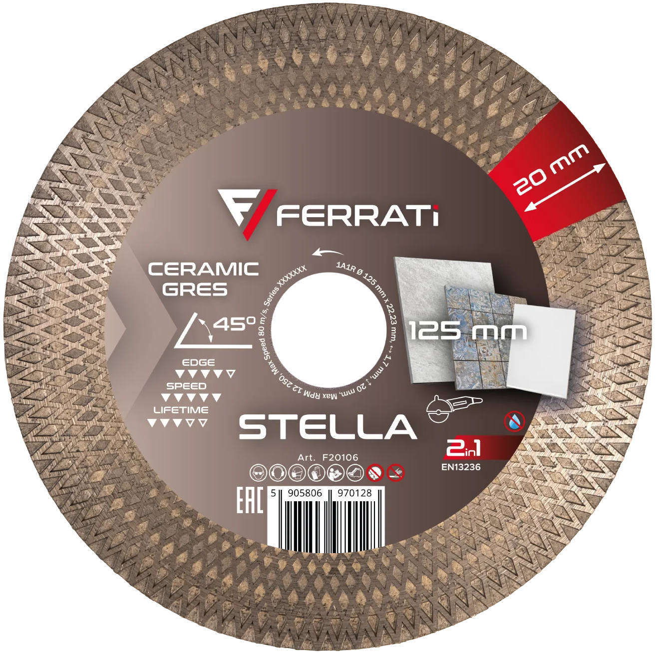 FERRATi TARCZA DIAMENTOWA TNĄCA I SZLIFUJĄCA 125 MM STELLA 22,23 CERAMICA F20106