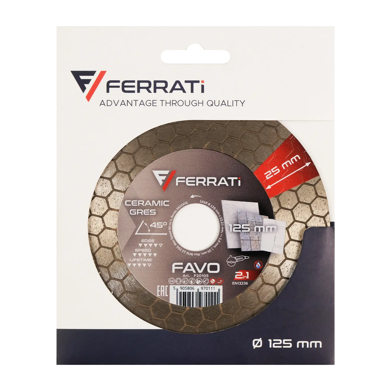 FERRATi TARCZA DIAMENTOWA TNĄCA I SZLIFUJĄCA 2IN1 125 MM FAVO CERAMICA GRES F20105