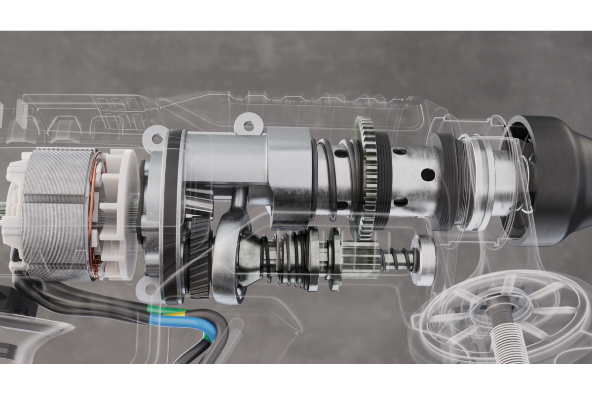 Metalowa przekładnia zwiększa odporność na zużycie i zapewnia precyzję działania mechanizmu.