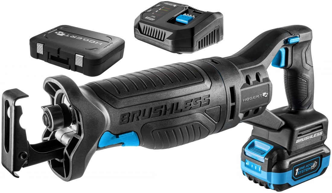 Zestaw zawiera pilarkę szablastą z bezszczotkowym silnikiem, metalową przekładnią i funkcją płynnej regulacji prędkości oraz dostosowania długości i nachylenia stopy, szybką ładowarkę oraz wydajny akumulator litowo-jonowy. Całość współpracuje z systemem OneAccuSystem 18V, zapewniając kompatybilność z innymi narzędziami marki.