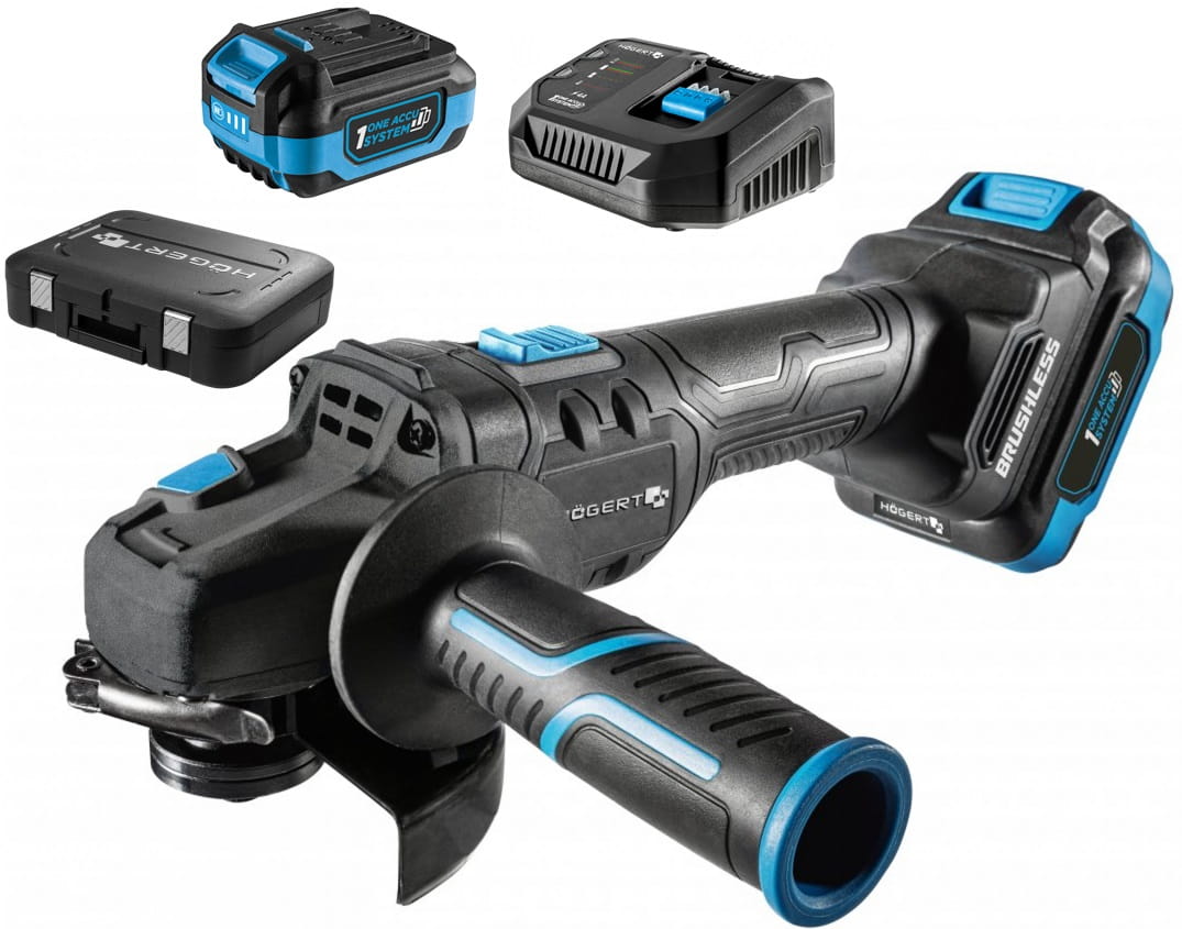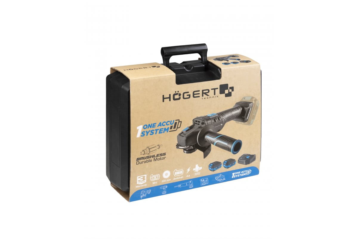 HOGERT ZESTAW SZLIFIERKA KĄTOWA 125 AKUMULATOR 2 x 4 Ah 18V HT2E231
