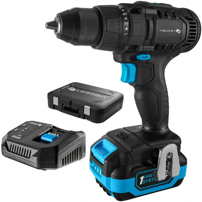 HOGERT ZESTAW WIERTARKO WKRĘTARKA AKUMULATOR 2Ah 18V WALIZKA HT2E220