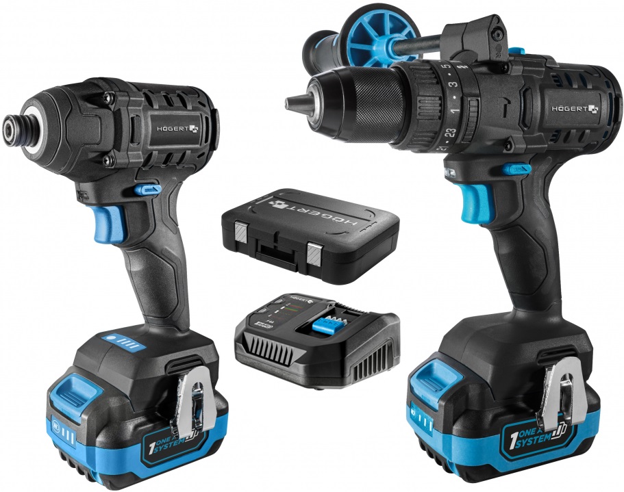 HOGERT ZESTAW WKRĘTARKA HT2E224 ZAKRĘTARKA HT2E225 UDAROWA 2 x AKUMULATOR 18V