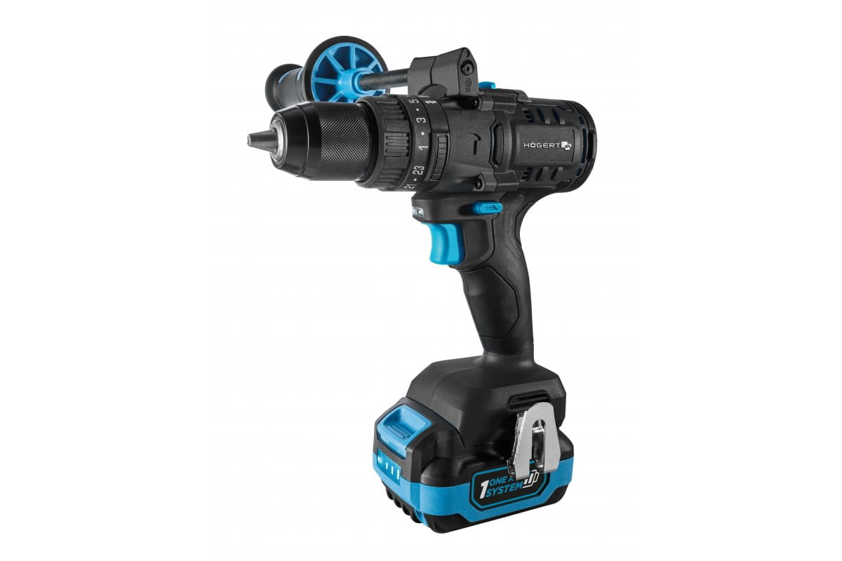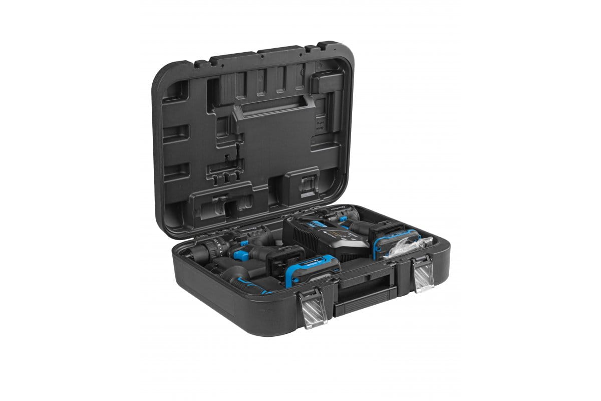 - Zakres dostawy: wkrętarka, zaczep do paska, uchwyt na bity, magazynek na bity, bit udarowy 100 mm, zakrętarka, ładowarka 4 A (HT2E242-C4), akumulator 4 Ah (HT2E240-A40), akumulator 2 Ah (HT2E239-A20), w walizce