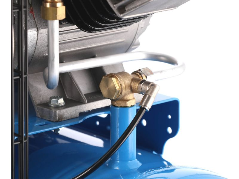 Duża chłodnica na wyjściu z bloku tłokowego sprawnie obniża temperaturę sprężonego powietrza. Wentylator osadzony na czole silnika gwarantuje duży przepływ powietrza przez chłodnicę. Miedziane rury zasilające są bardziej odporne na wysokie temperatury i dłuższe interwały pracy