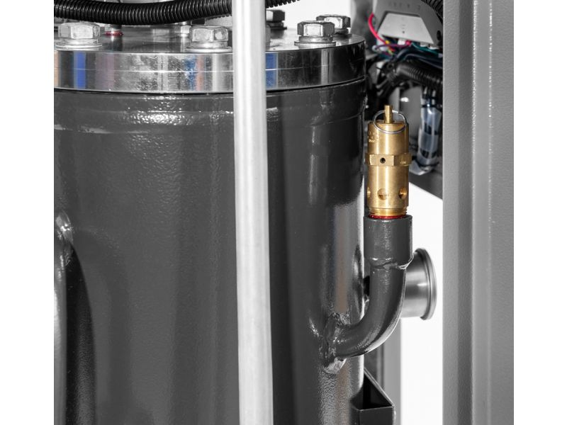 System chłodzenia oleju oraz sprężonego powietrza został opracowany tak, aby utrzymać odpowiednią i stabilną temperaturę. Chłodnice dwukanałowe w kompresorze APS 40 IVR X umieszczone są przy samej kracie wylotowej, aby nie ogrzewać wnętrza urządzenia, a także umożliwić optymalne odprowadzenie ciepła. Wentylator chłodnicy posiada precyzyjnie wyprofilowane łopatki przez co wymusza przepływ wyjątkowo dużej ilości powietrza chłodzącego. Sterowanie silnikiem wentylatora obsługiwane jest przez panel kontrolny, który uruchamia wentylator tylko w koniecznych momentach. Regulowany zakres temperatury minimalnej i maksymalnej wymusza pracę lub postój wentylatora, optymalizując tym samym zużycie energii dla procesu chłodzenia. Energooszczędność jest dla nas na pierwszym miejscu