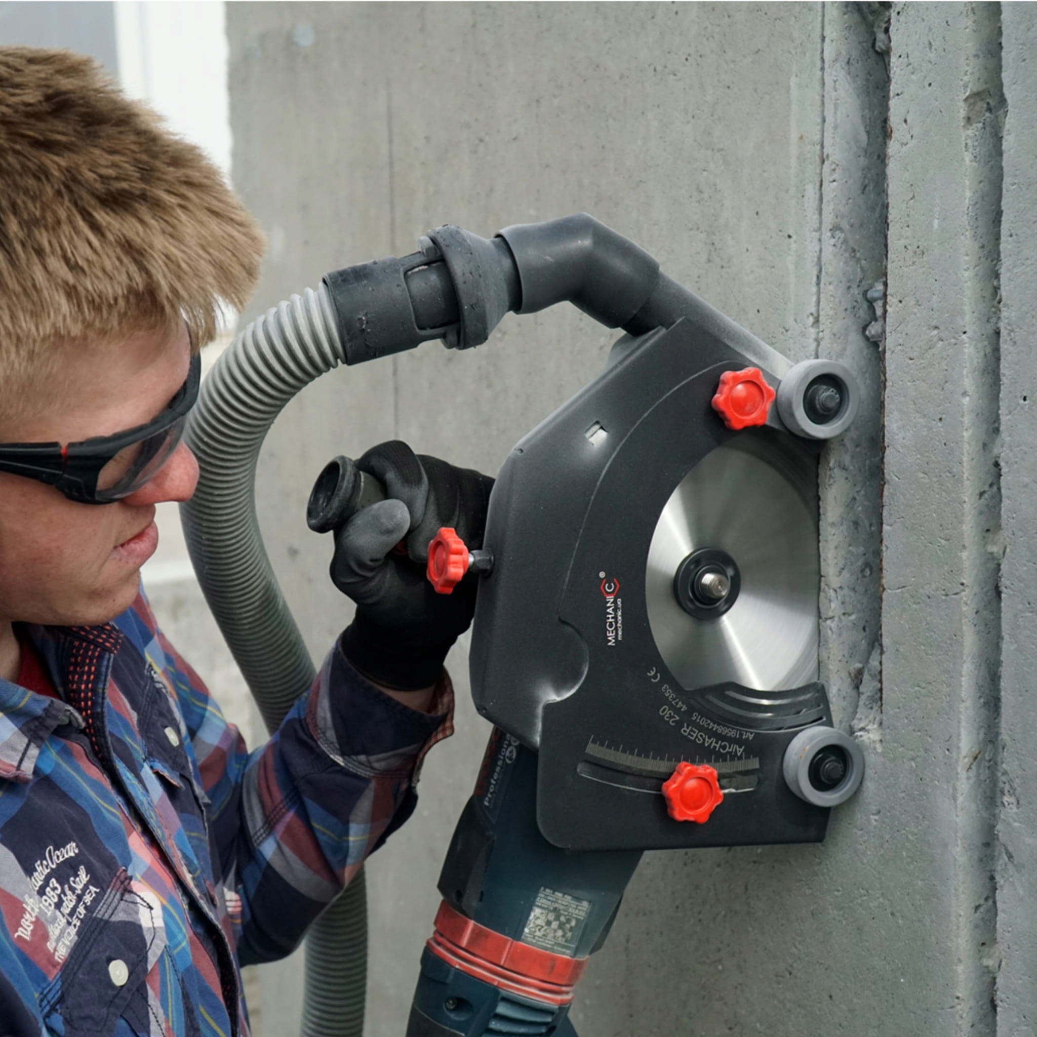 Przystawka-bruzdownica AirCHASER 230 przeznaczona jest do robienia bruzd do przewodów elektrycznych, wodociągów, kanalizacji na powierzchni betonowej, z cegły i innych.