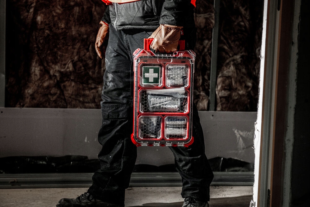 - Łatwa w identyfikacji podczas nagłych wypadków dzięki czerwonemu kolorowi organizera PACKOUT™.