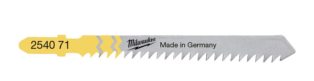 Do wszystkich typów drewna, laminowanych płyt wiórowych, płyt wiórowych, sklejki, płyt stolarskich i tworzyw sztucznych. Brzeszczot koloru srebrnego.