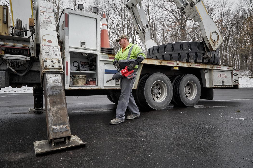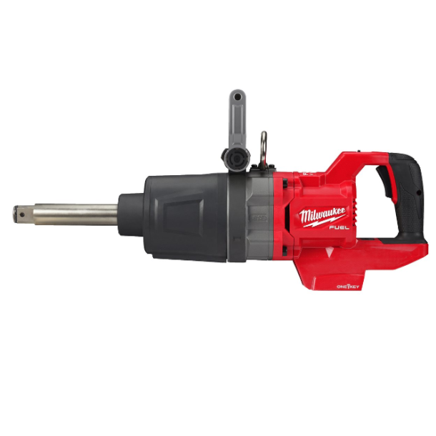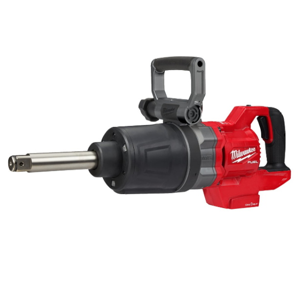 M18 FUEL ONE-KEY Klucz udarowy 1″ z rękojeścią D, długim wrzecionem i pierścieniem zapewnia maksymalny moment obrotowy o wartości 2 576 Nm zastępując klucze przewodowe, pneumatyczne oraz napędzane silnikiem benzynowym