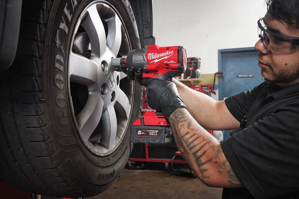 Mocny klucz udarowy M18 FUEL™ o wysokim momencie obrotowym zapewnia 1491 Nm momentu dokręcania i 2034 Nm momentu zrywającego w kompaktowych rozmiarach 193 mm, co zapewnia większy dostęp w ciasnych przestrzeniach