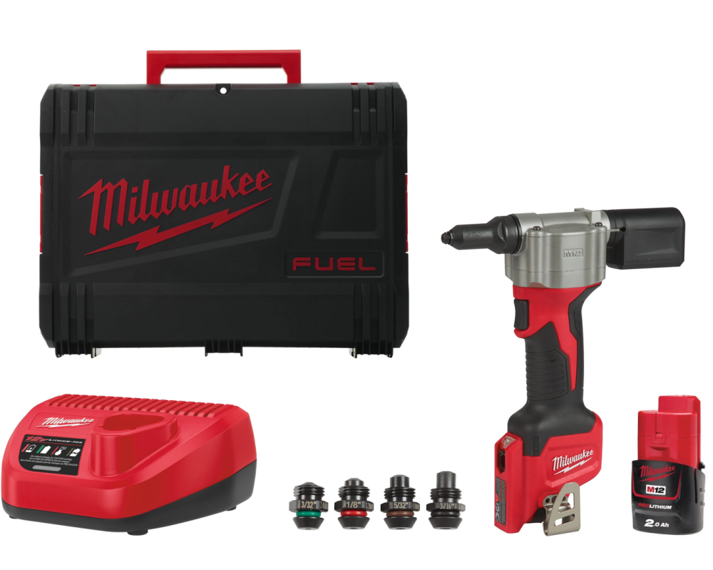 - Maksymalna ilość nitów wykorzystana podczas nitowania przy użyciu akumulatora M12 2.0Ah: 325 x 4.8 mm