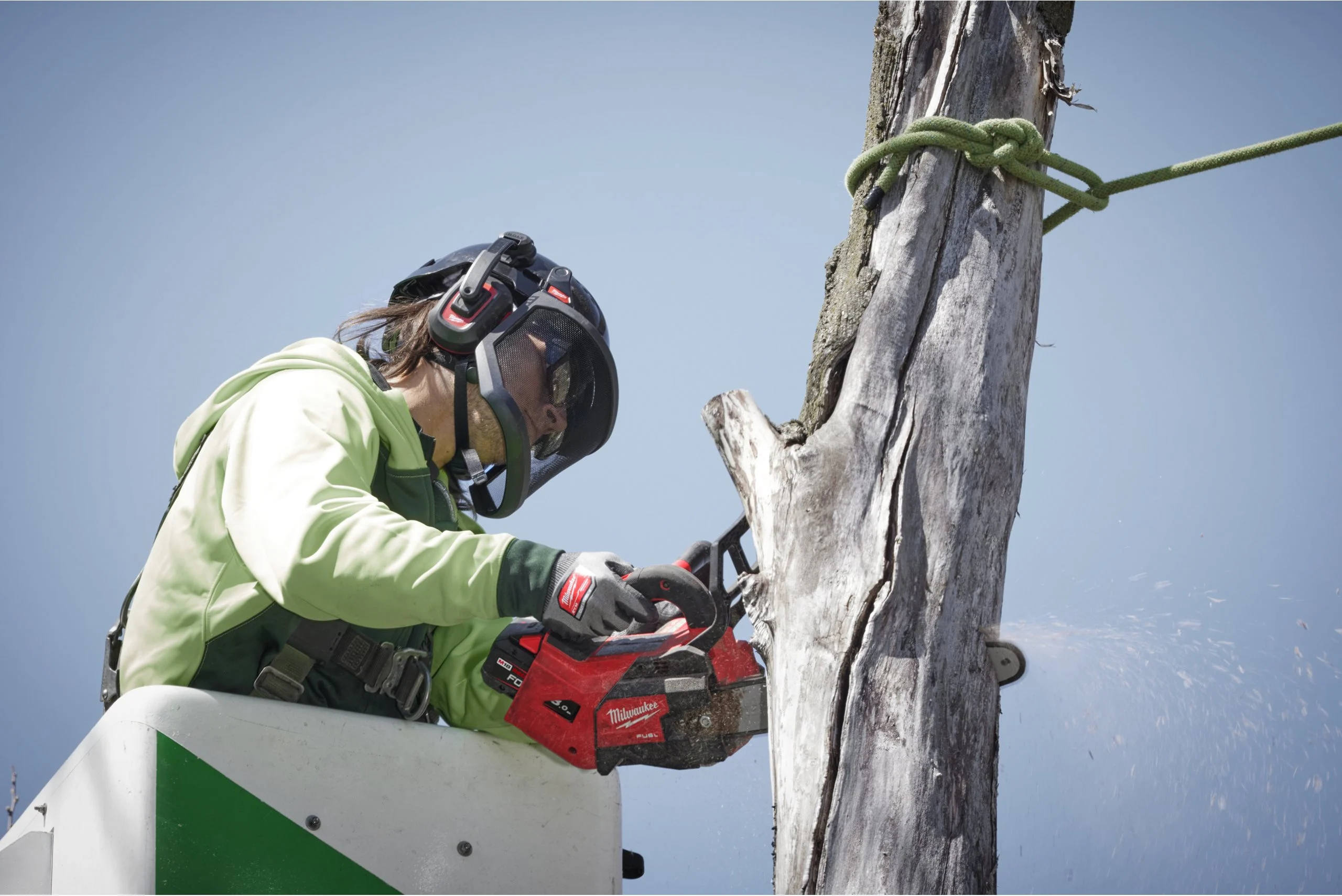 Znakomita prędkość cięcia twardego drewna w porównaniu z pilarkami spalinowymi o pojemności 60 cm3