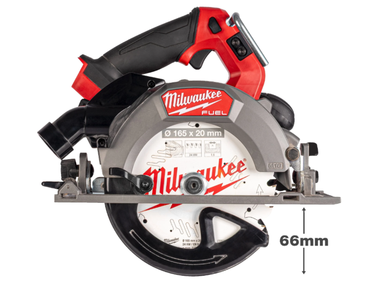 Pilarka tarczowa do cięcia głębokiego MILWAUKEE® M18 FUEL™ została zaprojektowana tak, aby zapewnić maksymalną głębokość cięcia 66 mm przy średnicy tarczy 165 mm