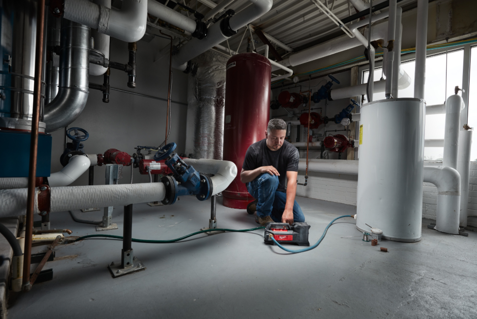 - Urządzenie 18 V ważące 3.4 kg jest znacznie lżejsze od przewodowych modeli pomp o podobnej wydajności i parametrach technicznych