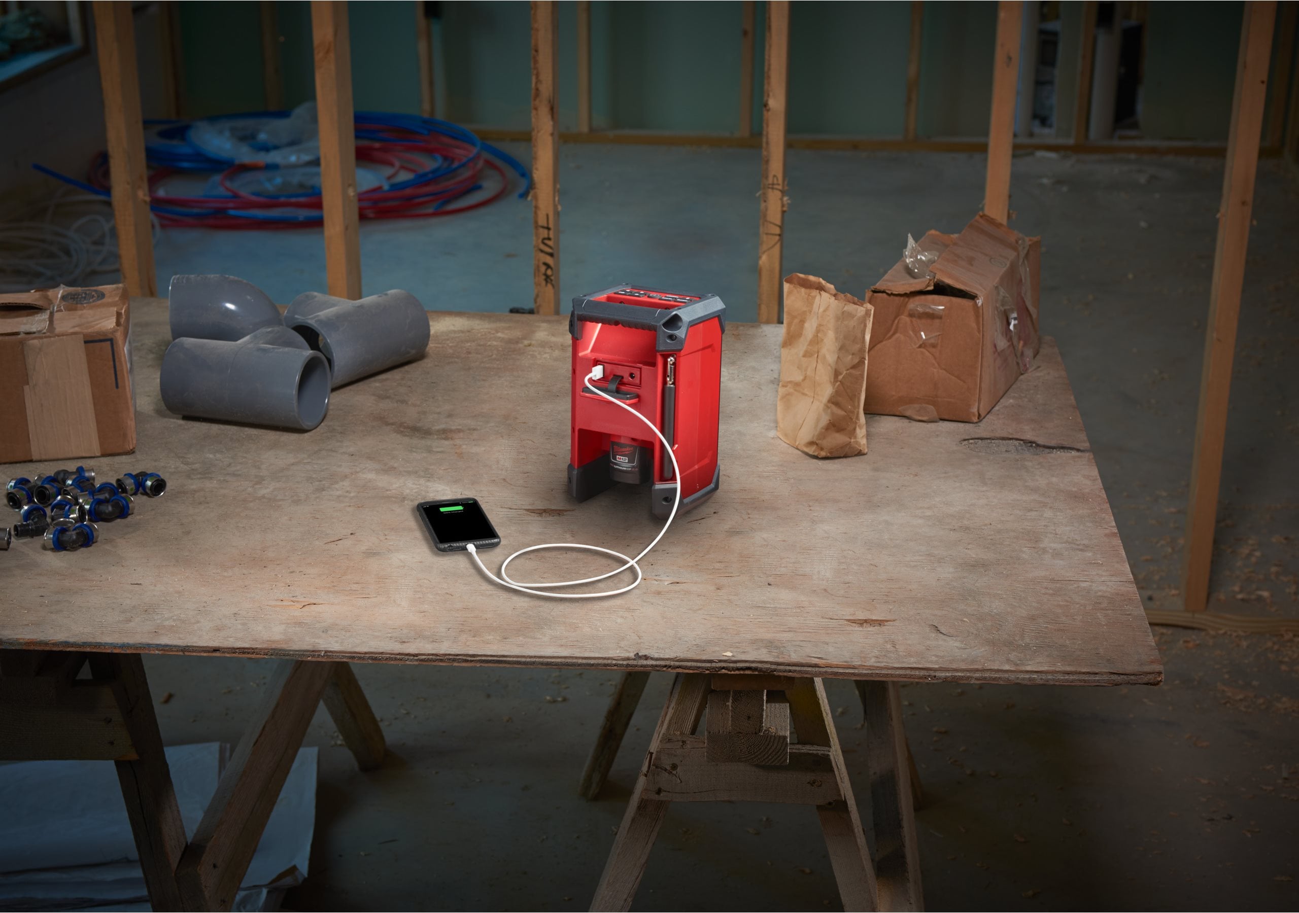 Wbudowana funkcja ładowania umożliwia szybkie i wygodne ładowanie dowolnego akumulatora M12™ lub urządzeń elektrycznych z portu wyjściowego na USB