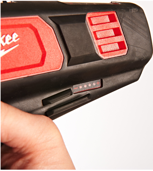 Na obudowie znajduje się wskaźnik poziomu naładowania akumulatora