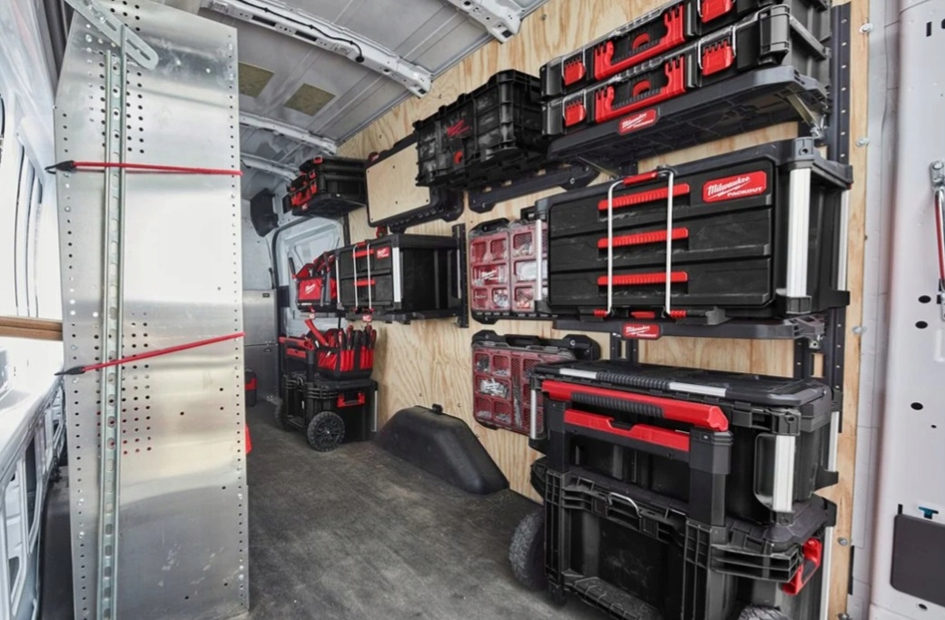 Szyny montażowe E-Track można montować na ścianie w pojazdach, sklepach lub garażach, zapewniając maksymalną wszechstronność.