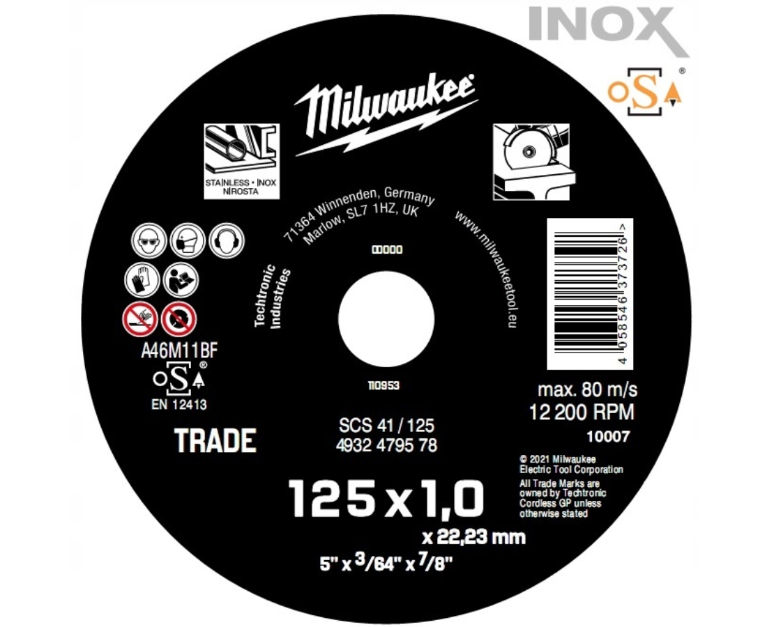 MILWAUKEE TARCZA KORUNDOWA DO METALU 125 x 1