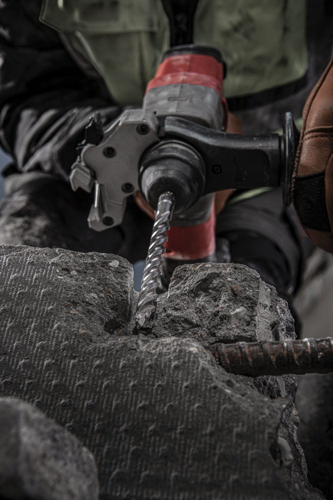 Geometria widii 4x90° gwarantuje perfekcyjne, gładkie i okrągłe otwory oraz redukuje ryzyko zakleszczenia się wiertła przy natrafieniu na pręt zbrojony
