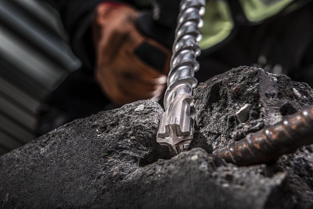 Geometria widii 4x90° gwarantuje perfekcyjne, gładkie i okrągłe otwory oraz redukuje ryzyko zakleszczenia się wiertła przy natrafieniu na pręt zbrojony
