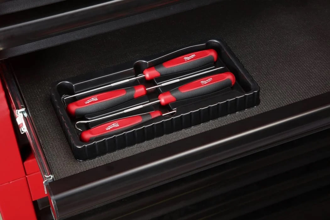 W zestawie znajduje się ułatwiająca dostęp, wytrzymała tacka na narzędzia służąca do ich przechowywania