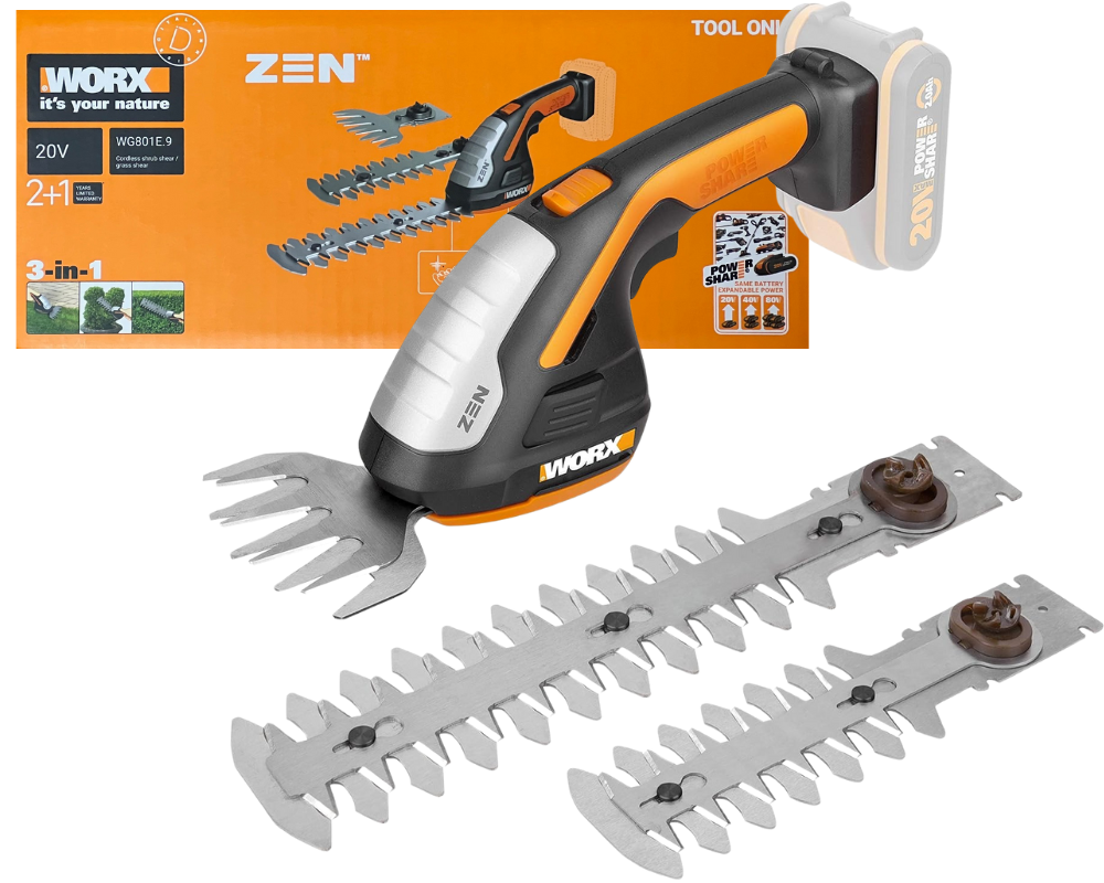 NOŻYCE DO TRAWY I KRZEWÓW W ZESTAWIE WORX WG801E.9