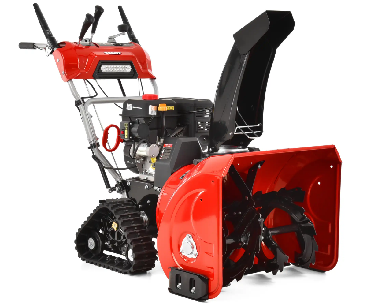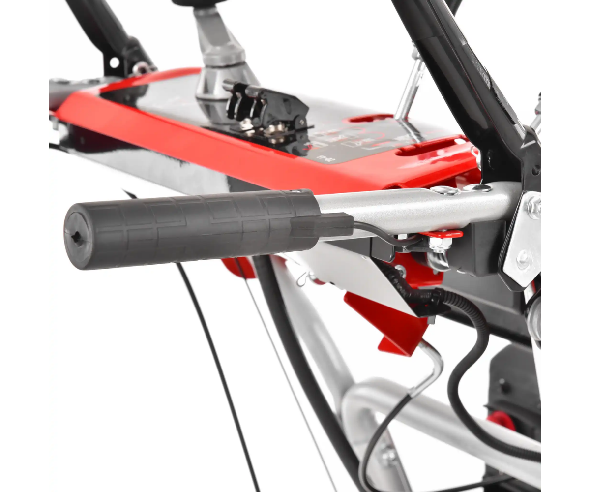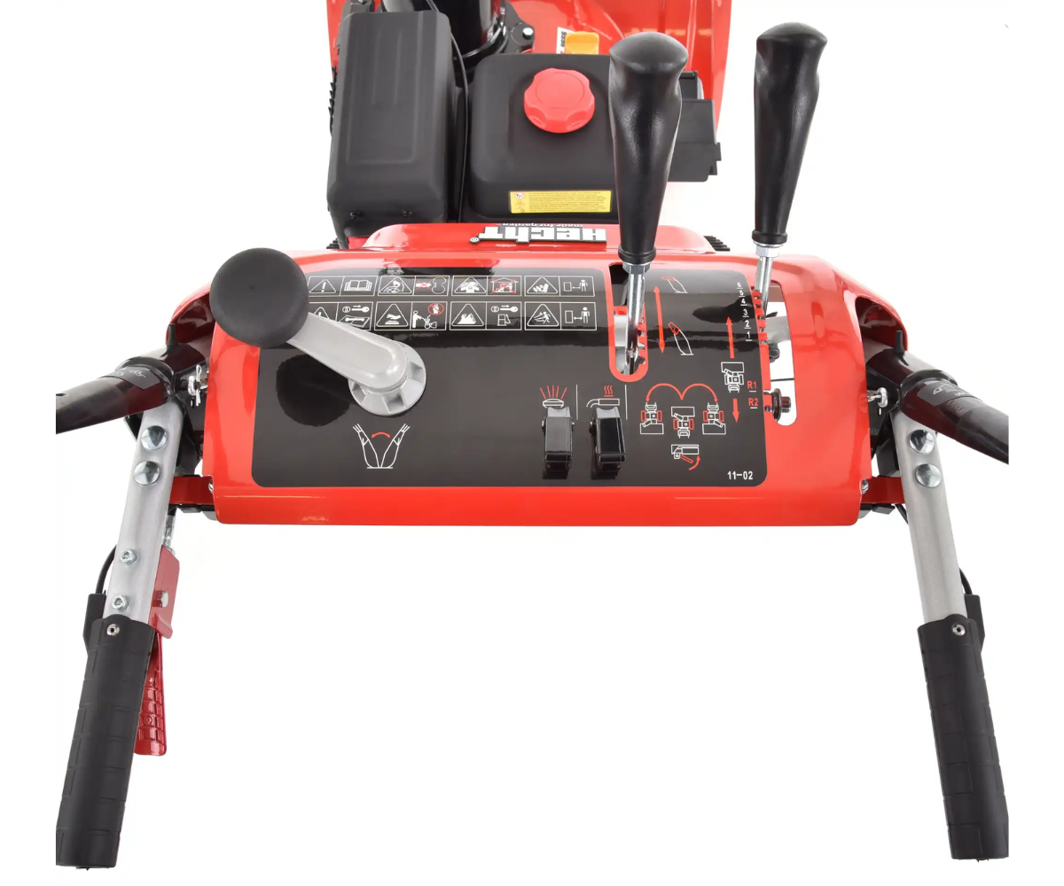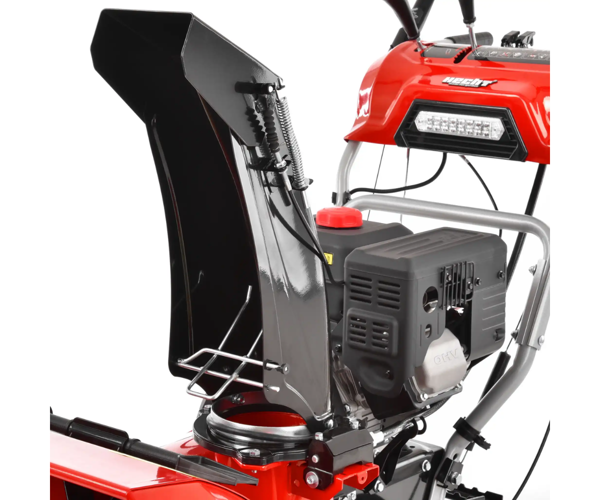 Podstawą odśnieżarki jest naprawdę solidna metalowa obudowa, w której kryją się dwa noże o szerokości 66 cm i wysokości 54 cm. Dzięki wytrzymałej konstrukcji zęby noża mogą nawet wgryzać się w zamarznięty śnieg, który z dużą prędkością wbijany jest do komina i wyrzucany na odległość 15 m. Komin wyrzutowy jest w pełni kontrolowany z miejsca operatora - kierunek wyrzutu można kontrolować w zakresie 190° za pomocą pętli pod głównym uchwytem, wysokość i długość rzutu za pomocą dźwigni bezpośrednio na głównym panelu sterowania kierownicy. Kolejnym elementem na panelu głównym jest dźwignia zmiany biegów. Podczas pracy masz łatwy dostęp do wszystkich elementów sterujących bezpośrednio z obszaru operatora. Ogrzewane uchwyty zapewnią ciepło Twoim dłoniom. Dzięki zintegrowanemu reflektorowi praca jest wygodna nawet we wczesnych godzinach porannych lub późnych godzinach popołudniowych i nocnych. Dzięki tej odśnieżarce śnieg nigdy Cię nie zaskoczy.