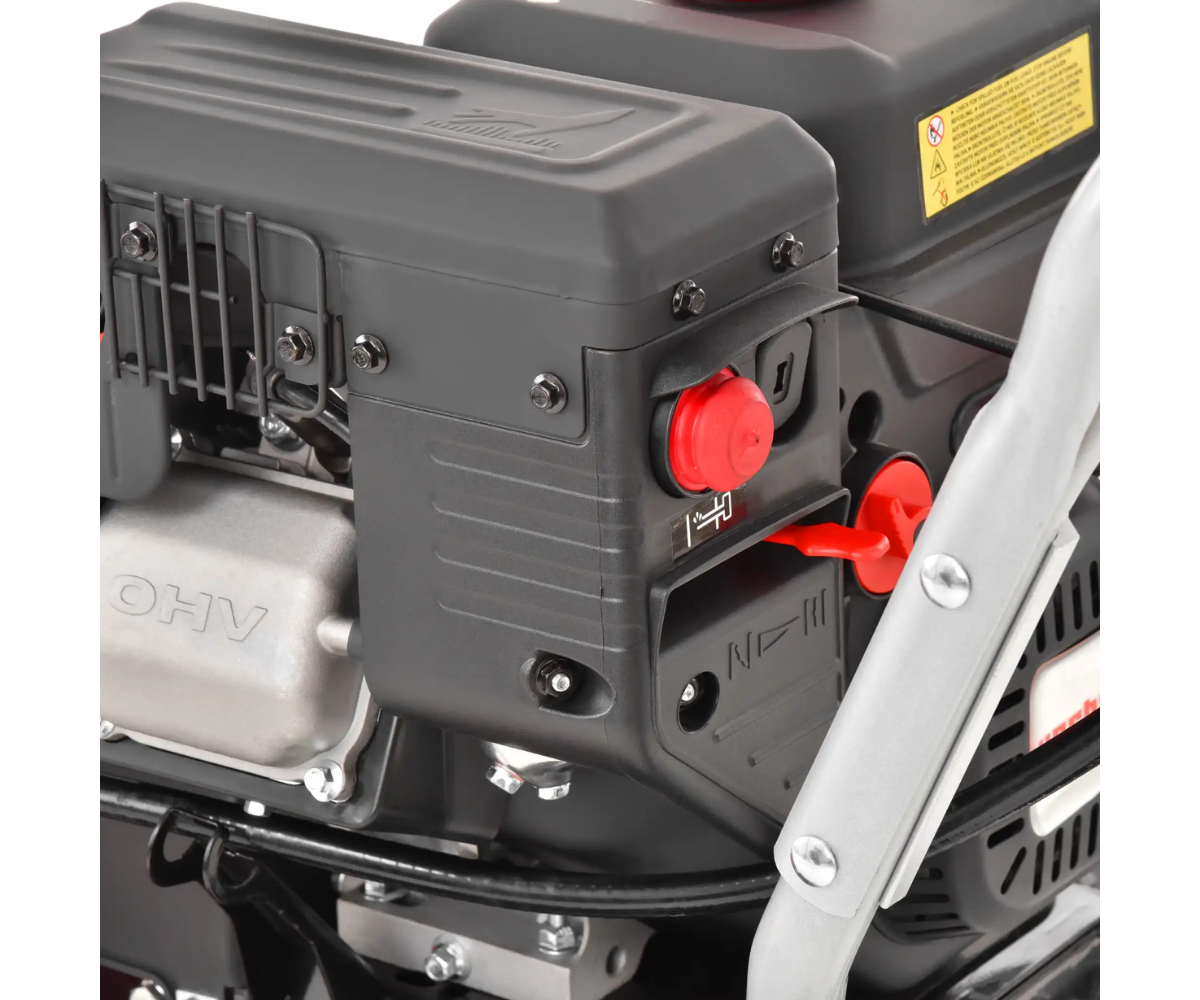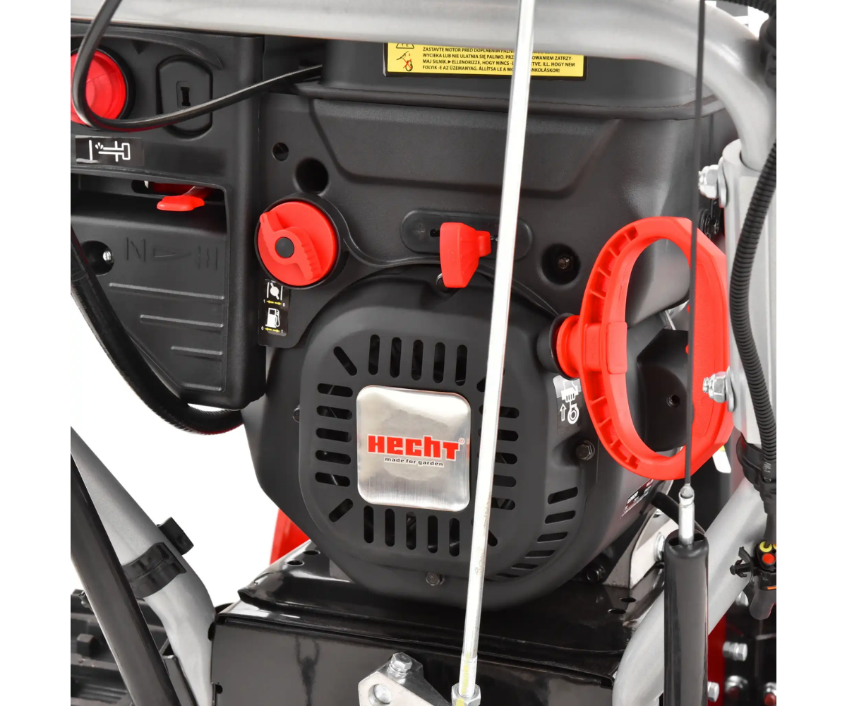 HECHT 9666 to ponadstandardowa odśnieżarka dwustopniowa z napędem. Jako jednostkę napędową służy silnik benzynowy HECHT OHV o pojemności 252 cm3 i mocy 7 KM, który świetnie sprawdza się w warunkach zimowych. Silnik można uruchomić zarówno ręcznie, jak i rozrusznikiem elektrycznym za pomocą kabla z klasycznego gniazda 230 V. W ten sposób możesz uruchomić zimny silnik bez wysiłku, natomiast ciepły silnik możesz łatwo uruchomić za pomocą cięgła. Ponieważ akumulator nie jest używany do rozruchu, nie ma niebezpieczeństwa uszkodzenia go przez mróz. Wysokiej jakości przekładnia umożliwia 6 prędkości do przodu i 2 do tyłu. Do jazdy służą gumowe gąsienice z bieżnikiem. Regulowane ślizgacze po bokach obudowy zapewniają również wygodne i łatwe manewrowanie, przy jednoczesnym zachowaniu bezpiecznej odległości dzielącym ślimak od podłoża.