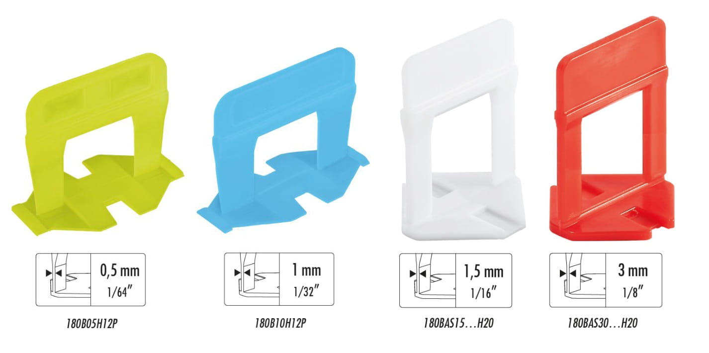 R.L.S. oferuje również klips dla materiałów o minimalnej grubości płytki 12 mm i maksymalnej 20 mm, które pozostawiają połączenie między płytkami 1,5 mm