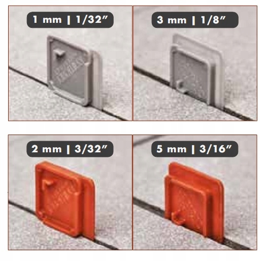 Każda podkładka przeznaczona jest do robienia fug o dwóch różnych rozmiarach: dwie strony tworzą połączenie w jednym wymiarze, dwa boki w innym.
