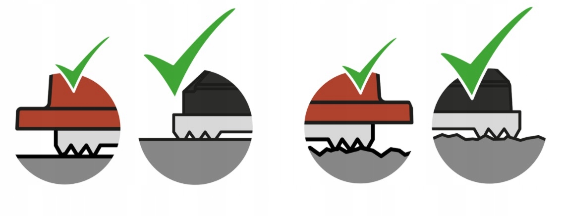 Nadaje się do płytek o powierzchni gładkiej i strukturalnej dzięki specjalnej gumie trójwargowej