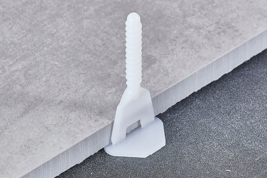 System poziomowania płytek RLS VITE składający się z nakrętki i śruby.