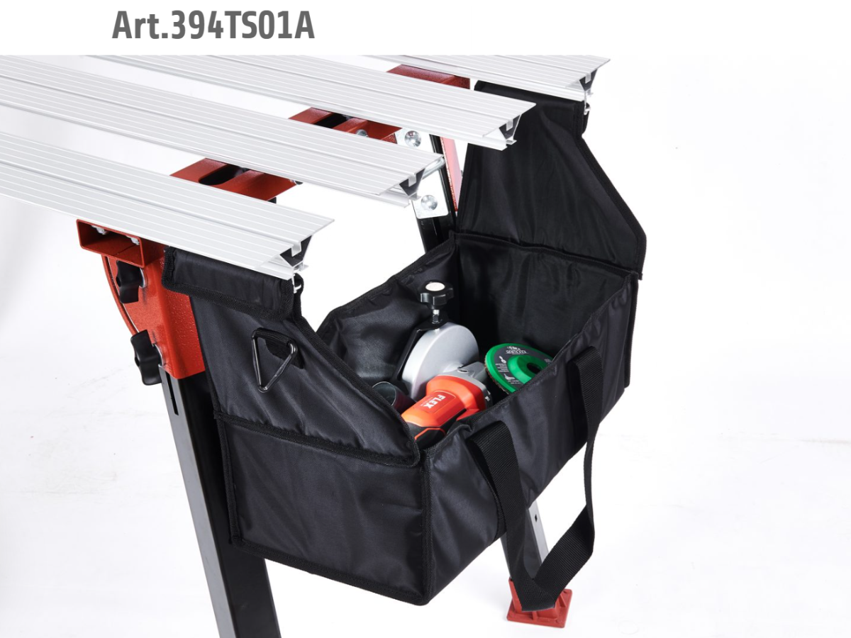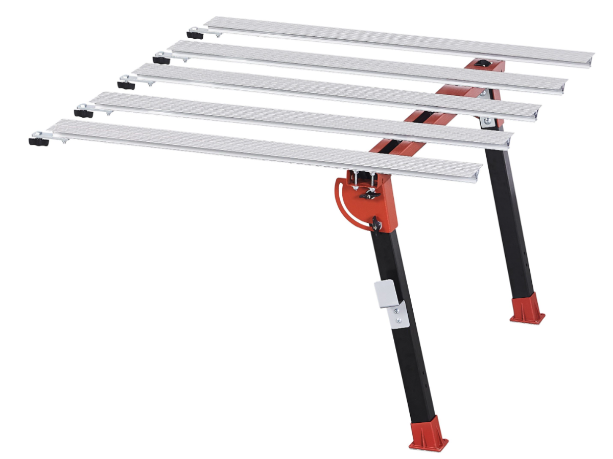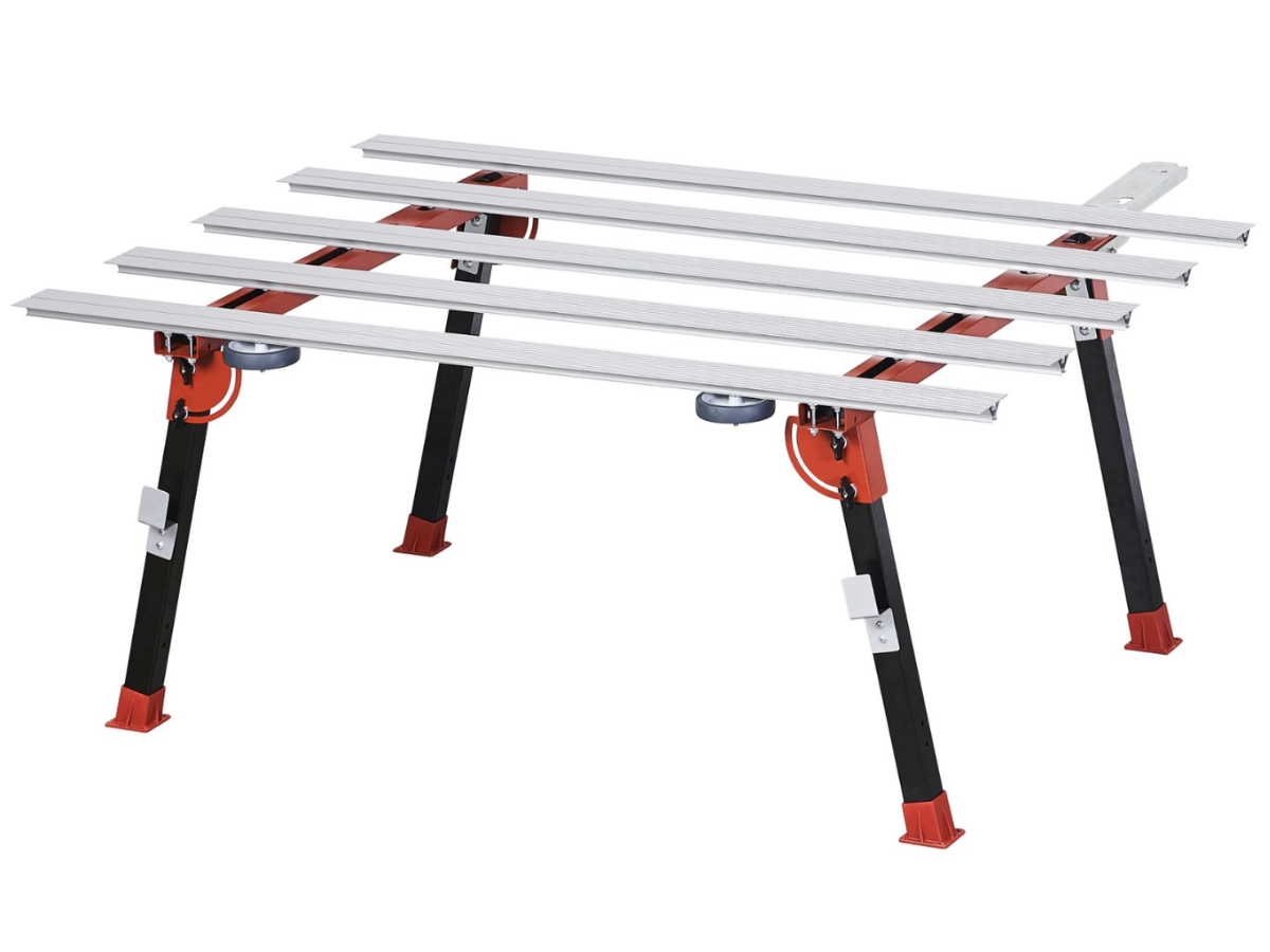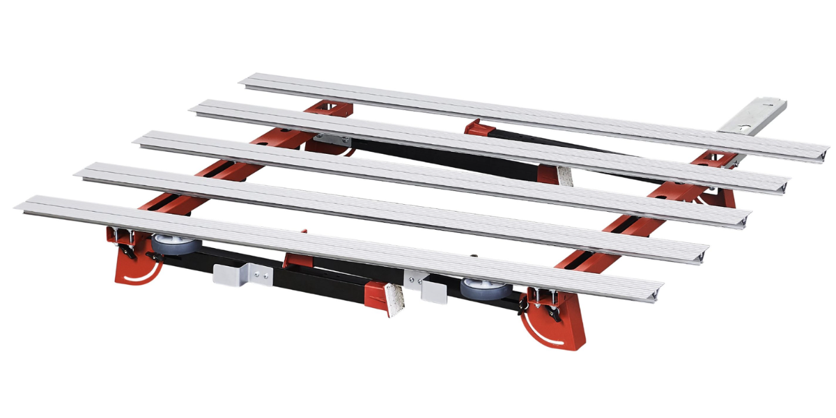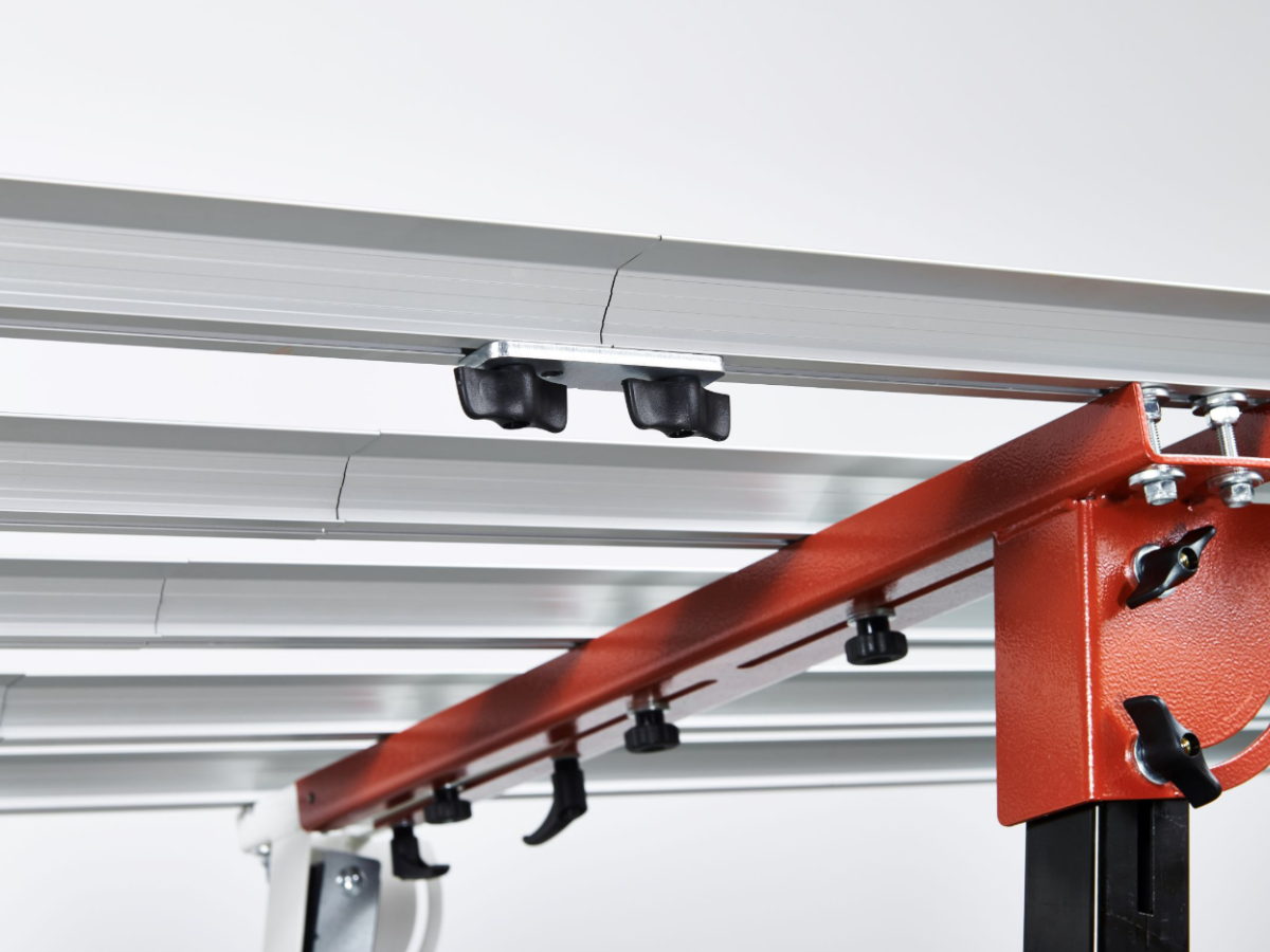 • Przesunięte i ruchome profile aluminiowe umożliwiają cięcie szlifierką kątową z tarczą diamentową bez uszkadzania powierzchni roboczej. Dodatkowo, specjalne rolki podporowe do płytek, dostępne jako akcesoria, tworzą szczelinę między płytką a powierzchnią roboczą i zapobiegają uszkodzeniu powierzchni roboczej przez tarczę diamentową, niezależnie od kierunku cięcia.
